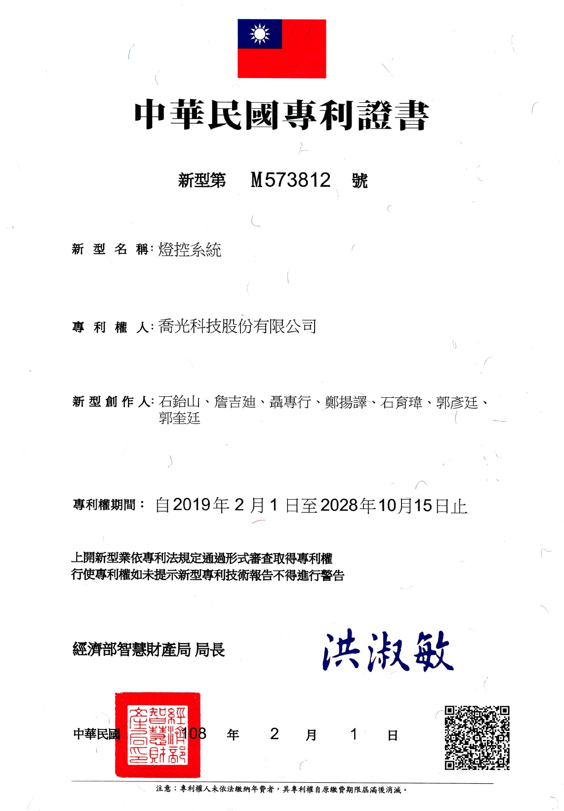 喬光科技獲得<新型專利>-燈控系統